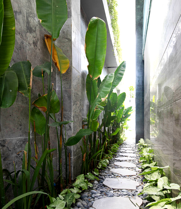 Xung quanh nhà chỉ có một khoảng trống nhỏ. Thật tinh tế nếu như bạn thiết kế ở đó một tiểu cảnh lối đi có nhiều câu xanh. Nó sẽ giúp bạn giảm stress mỗi khi đi dạo và cây xanh còn có chức năng thanh lọc không khí mang lại nguồn khí trong lành làm con người trở nên khỏe khắn, kéo dài tuổi thọ.