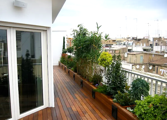Đối với những ngôi nhà có nhiều tầng thì sân thượng cũng sẽ là nơi thích hợp để thiết kế tiểu cảnh sân vườn. Bạn có thể đặt ở đó nhiều chậu cây cảnh khác nhau, nhằm tạo sự da dạng. Ai có thoái quen uống trà hoặc tập thể dục trên sân thượng thì việc đặt các chậu cây sẽ rất thiết thực, vừa giúp điều hòa không khí vừa tạo cảm giác thoảng mái khi nhìn ngắm chúng.