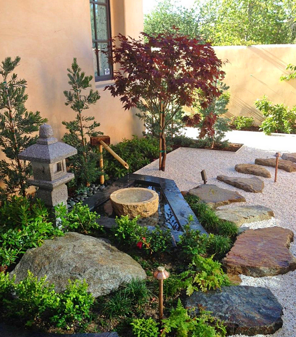 Với sân vườn thiết kế kiểu Nhật đầy yên tĩnh, thì việc sử dụng tiểu cảnh có âm thanh róc rách sẽ mang lại không gian thư giãn, dễ chịu, là liều thuốc giúp xua tan đi mệt mỏi của cuộc sống bộn bề.