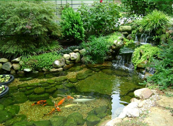 Xây dựng hồ cá Koi quả thật là một sự lựa chọn lý tưởng cho khu vực phía sau nhà bạn. Xung quanh trang trí rất nhiều cây xanh tạo thành một bức tranh phong cảnh đặc sắc. Phía dưới, hình ảnh cá bơi lội dưới hồ sẽ giúp cho gia chủ giảm căng thẳng, phấn chấn tinh thần.