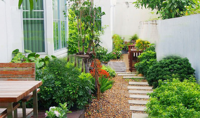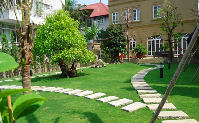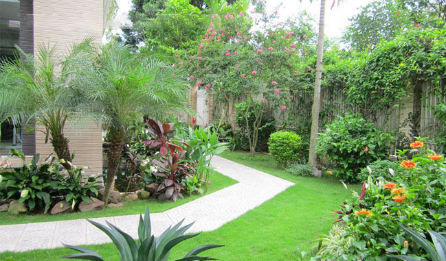 Sân vườn luôn luôn xanh mát, tươi mới cho cả tuổi già và tuổi trẻ, cho cả những người thích sự sinh động hay những ai yêu thích sự trầm mặc, tĩnh lặng của thiên nhiên đều sẽ phù hợp cả. Đối với những không gian rộng thường sẽ trồng 2 hàng cây 2 bên nhà tạo sự vững chắc cho ngôi nhà.