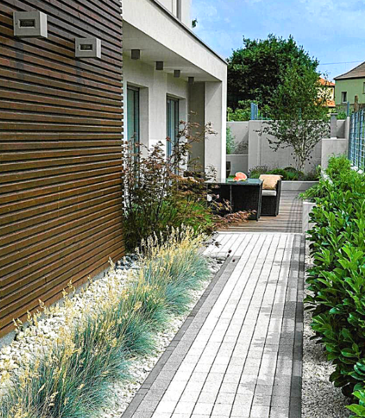 Sân vườn nhỏ trước nhà được thiết kế với cây xanh, tường cây và thảm cỏ góp phần bảo vệ môi trường và giảm thiểu tối đa các loại khí độc hại, bụi bẩn. Đối với những ngôi nhà chỉ được xây toàn bộ bằng bê tông thì với kiểu thiết kế này sẽ giúp giảm đi sự đơn điệu cũng như tạo điểm thú vị cho ngôi nhà.
