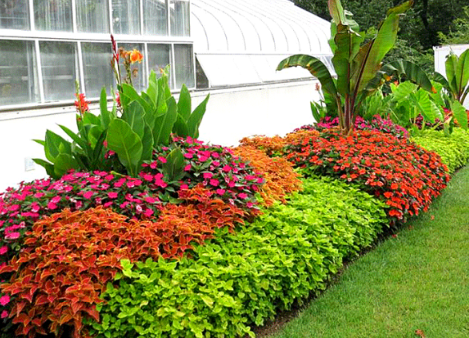 Sử dụng các cây xanh nhỏ sắp xếp gần lại với nhau hình thành một đường viền cho bồn hoa. Bên trong các loại hoa được sắp xếp xen kẽ về màu sắc, hình dạng,.. với nhau hoặc xem kẽ với các loại cây khác tạo nên bố cục hài hòa và làm thu hút ánh nhìn của chúng ta bởi vẻ đẹp độc đáo của chúng.