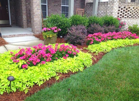Bồn hoa rực rỡ dọc theo lối đi là kiểu thiết kế được nhiều người lựa chọn nhất, nó phù hợp với bất cứ nơi đâu từ nhà ở đến các không gian sinh hoạt cộng đồng vì tính tiện dụng, giá hợp lý và dễ thi công. Trang trí trong bồn là các loại hoa tầm thấp có màu sắc rực rỡ, đây sẽ là yếu tố làm nổi bật cho khuôn viên. Ngoài ra, với thiết kế này giúp bạn dễ dàng trong việc chăm sóc, thay mới để luôn mang đến sự mới mẽ cho sân vườn.