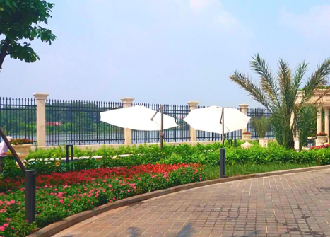 3. Bồn hoa rực rỡ dọc theo lối đi