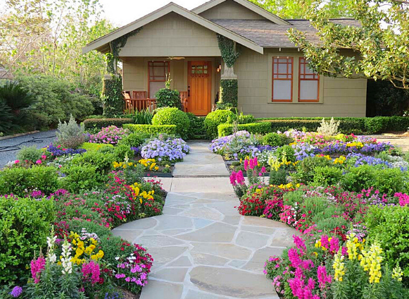 Có một cách khá đơn giản khiến khu vườn của bạn trông quyến rũ hẳn lên, đó là tạo ra vườn hoa dọc theo lối nhỏ vào nhà. Mỗi khi khách đến chắc hẳn rất thích thú khi dạo bước trên những con đường ấy, bởi họ sẽ có cảm giác như đang được dẫn dắt, mời gọi vào nhà.
