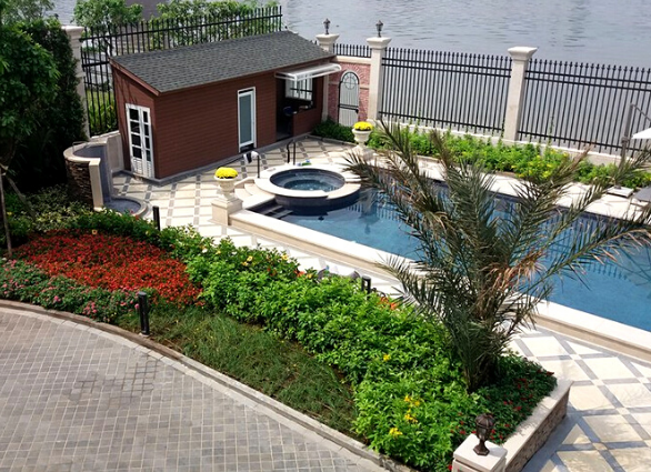 Một ngôi nhà cạnh sông đã là một không gian lý tưởng. Nhưng thiết kế sân vườn cạnh sông thì nó còn lý tưởng hơn. Việc thiết kế sân vườn biệt thự với cây xanh bố trí đẹp mắt và độc đáo sẽ là không gian lý tưởng để đi dạo, hít thở không khí và thưởng thức nguồn gió thiên nhiên mang theo mùi hương của các bụi hoa trong sân vườn. Đặt thêm một chiếc bể bơi nhỏ ở sân vườn gần sông cũng đủ tạo cho gia chủ cảm giác như đang hòa mình dưới sông giữa mùa hè oi bức này.