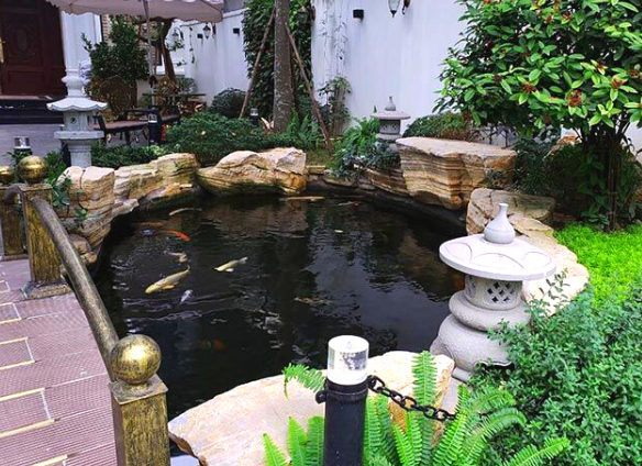 Hồ cá Koi được thiết kế cầu kỳ, độc đáo, kết hợp với nhiều cây xanh, đèn đá, cây cầu bắt ngang, dưới hồ là hình ảnh đàn cá Koi nhiều màu sắc đang bơi lội tung tăng, tạo nên một bức tranh vô cùng hoàn mỹ, làm nổi bật không gian sống, khiến chúng ta bị thu hút bởi vẻ đẹp của chúng.