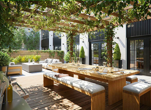 3. Thiết kế cây xanh xung quanh khu nghỉ mát sân thượng