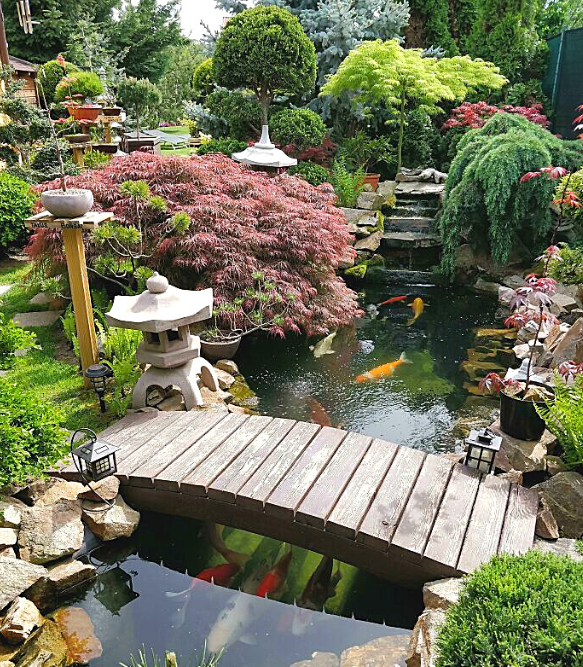 Có rất nhiều cách để có thể làm tăng sự mới lạ cho sân vườn. Thay vì chỉ bố trí các loại cây xanh, hoa, thảm cỏ… thì việc có thêm yếu tố nước từ tiểu cảnh hồ cá ngoài trời sẽ làm cho không gian trở nên ấn tượng hơn. Không những vậy với thiết kế cây cầu nhỏ bắt ngang qua sẽ là điểm nhấn giúp công trình trở nên độc đáo và hài hòa, tăng thêm vẻ đẹp cho sân vườn.
