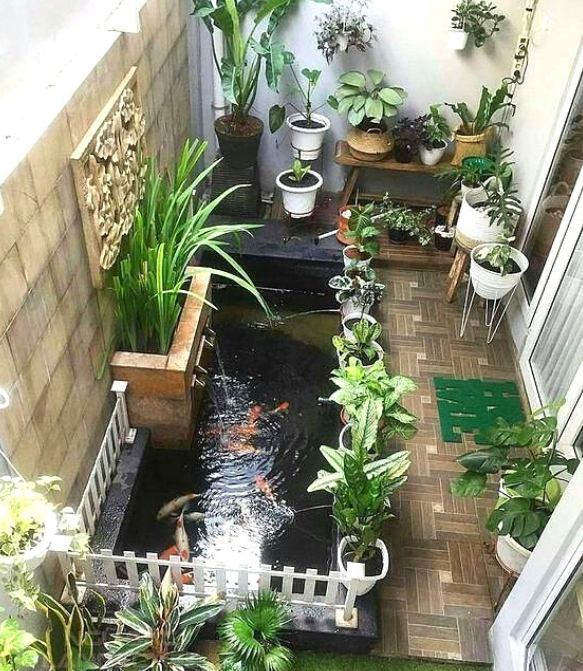 Nếu gia đình bạn có không gian rộng lớn, sân vườn đủ rộng, bạn có thể thi công hồ cá mini phía sân sau nhà. Việc xây dựng các hồ cá mini sẽ giúp giảm căng thẳng, stress,…. Một hồ cá nhỏ trong ngôi nhà vừa giúp trang trí, làm đẹp vừa là thú vui tao nhã mang lại những phút giây thư giãn cho gia đình.