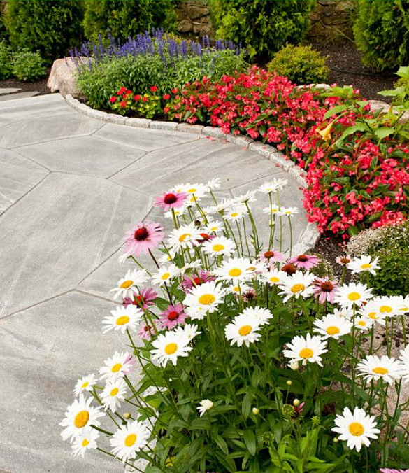 Sân vườn khi đặt nhiều cây xanh thì sẽ cho không khí trong lành thoáng mát những sẽ hơi đơn điệu. Nếu như quanh lối đi có thể đặt thêm các bụi hoa nhiều màu làm tăng thêm sự đa đạng. Hương thơm thoang thoảng của hoa sẽ làm bạn ngây ngất mỗi khi đi lại trong khu vườn.