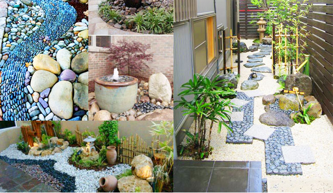 Tiểu cảnh khô thường được sử dụng các loại sỏi, đá, đèn đá, cây giả, những con vật ngộ nghĩnh hay những pho tượng, … để trang trí và tạo điểm nhấn.