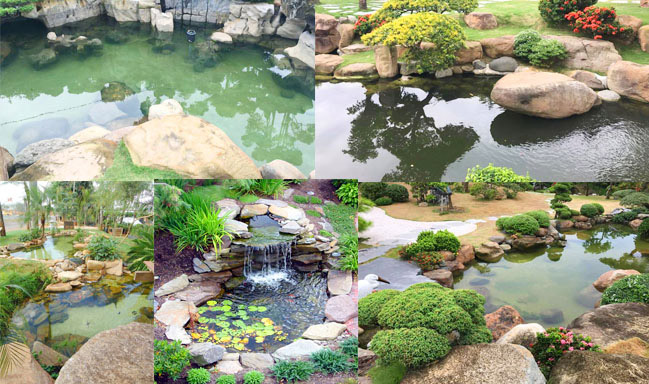 Tiểu cảnh nước thường là hồ cá kết hợp với đá cây bonsai để tạo nên tiểu cảnh hồ nước thiên nhiên.