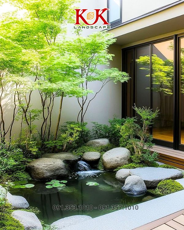 Tiểu cảnh nước chảy, non bộ, cây xanh hợp mệnh giúp kích hoạt năng lượng tích cực.