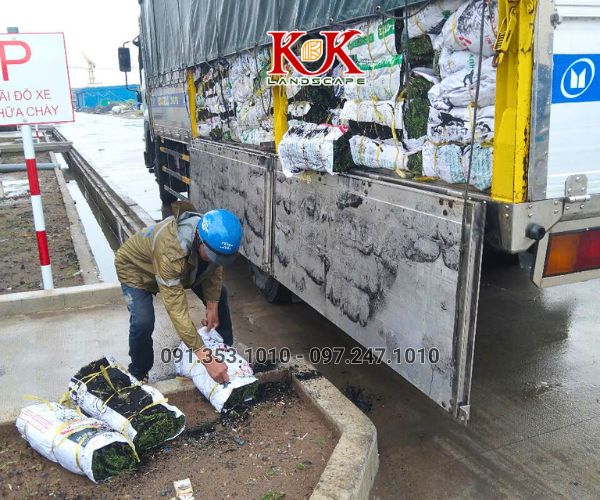 (Hình: Cỏ nhung Nhật được vận chuyển tới công trình)